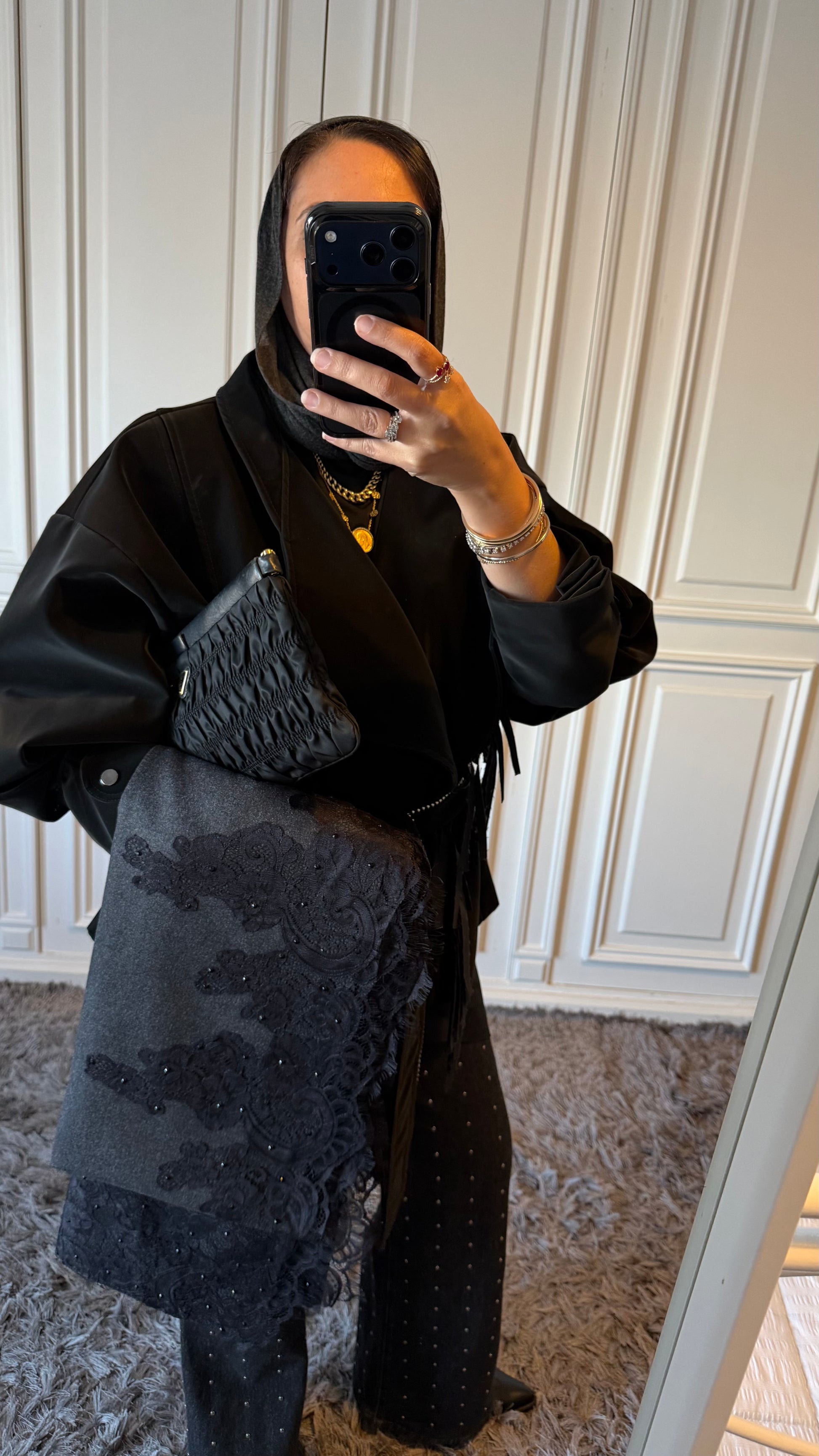 Elevate your everyday look with this sophisticated grey wool scarf, a wardrobe essential that bridges casual and refined style. Woven from luxurious wool, it provides gentle warmth while maintaining an airy drape. The intricate lace detailing brings an unexpected touch of femininity and artistry, making it equally at home with minimalist basics or layered outfits. Whether wrapped around your shoulders or styled as a headpiece, this chic accessory transforms any ensemble into something distinctly polished and intentional.