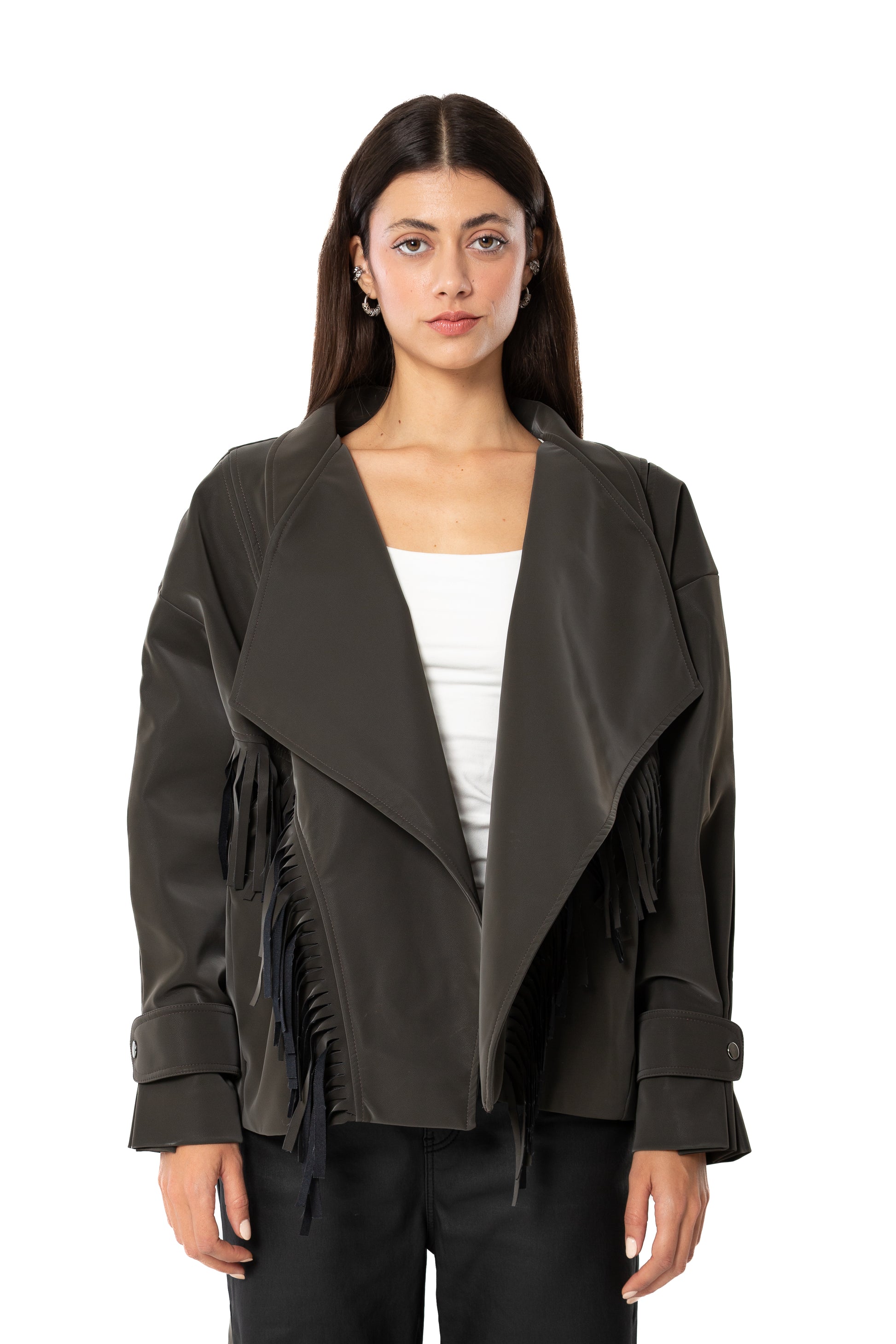 Transform your everyday style with this Olive Leather Effect Bomber Jacket—a bold statement piece that merges sophistication with edge. The luxurious faux leather exterior catches light beautifully, while the distinctive olive hue sets you apart from the crowd. This isn't just outerwear; it's an investment in versatile elegance that transitions seamlessly from casual brunches to evening outings. The refined bomber cut flatters every silhouette, offering both comfort and confidence. Own a jacket that speaks to your refined taste and fearless fashion sense.